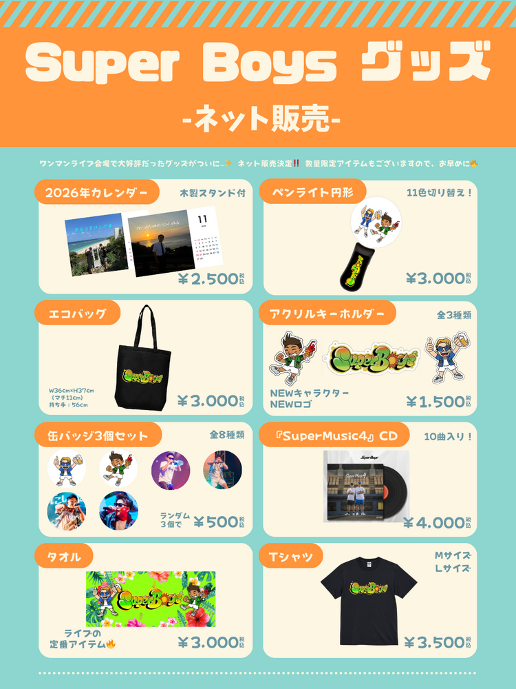 📢【SuperBoys グッズ ネット販売スタート‼️】